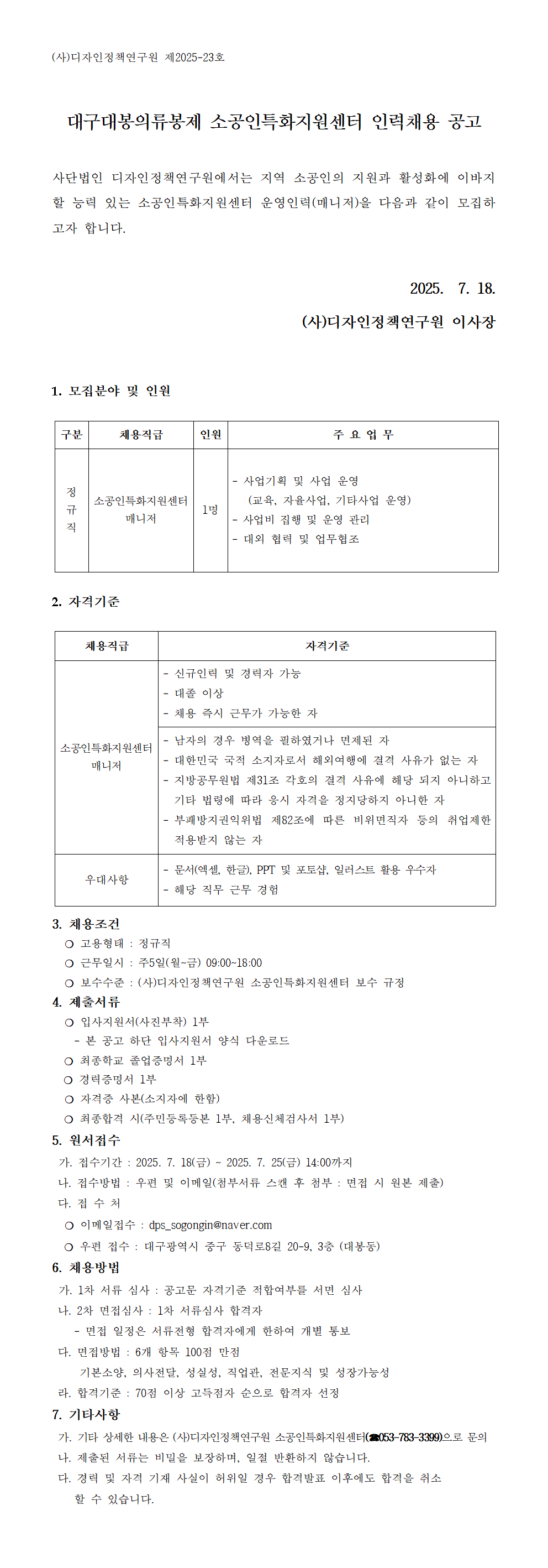 (사)디자인정책연구원 전문인력 채용 공고(7/18~7/25)