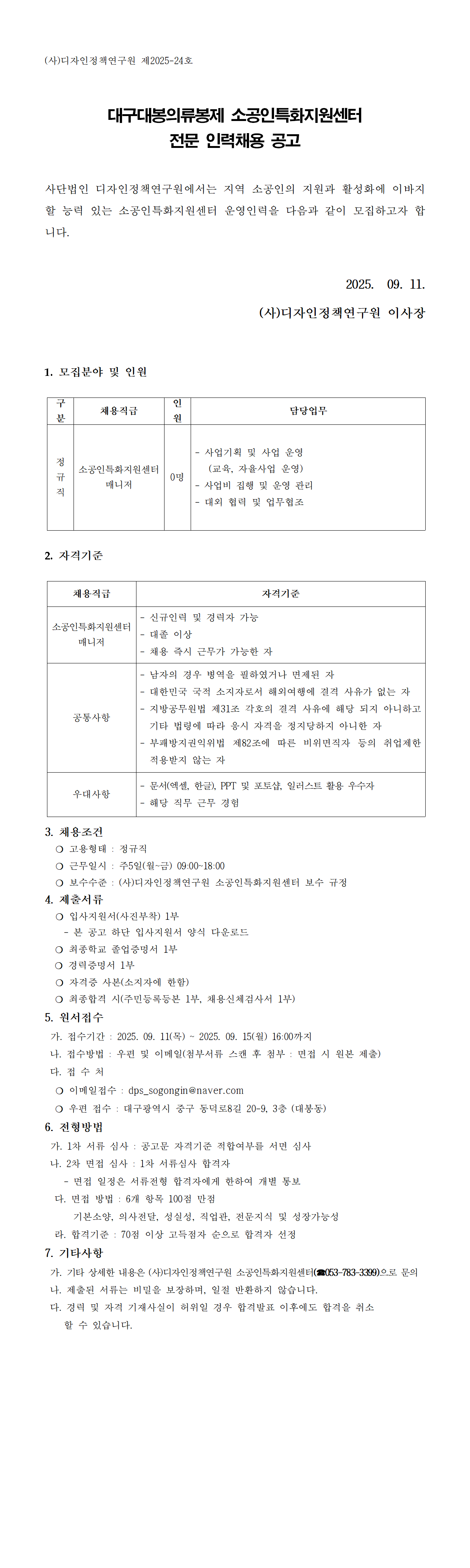 (사)디자인정책연구원 전문인력 채용 공고(9/11~9/15)